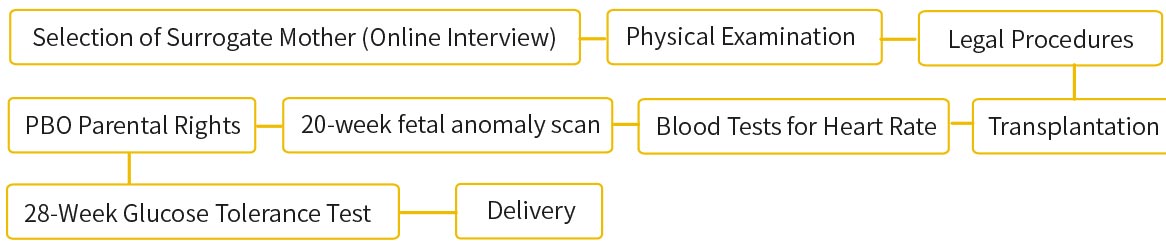 Single men go to the United States to collect sperm in person, and the sperm collection period will last about 3 to 7 days. The egg source can be selected in advance, and the American Reproductive Medicine Center will conduct the embryo process and pass the PGS test before implanting it into the surrogate mother’s uterus. The total time it takes to complete a surrogate pregnancy is about 12 to 14 months.